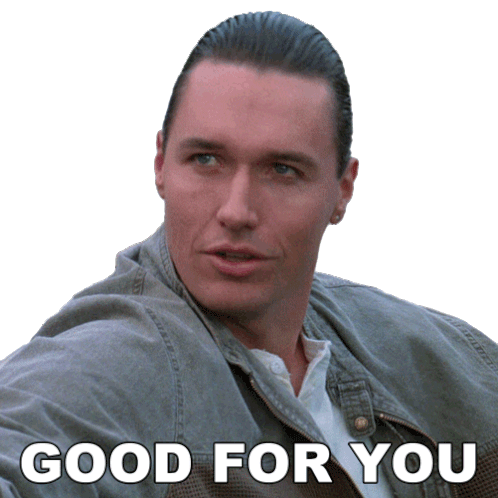 Terry Silver from The Karate Kid says 'Good For You' with a knowing look. Thomas Ian Griffith's iconic character.