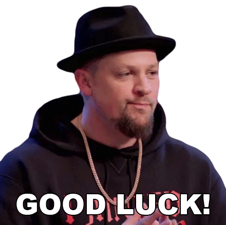 Joel Madden from Ink Master wishes you good luck, wearing a fedora and gold chain.