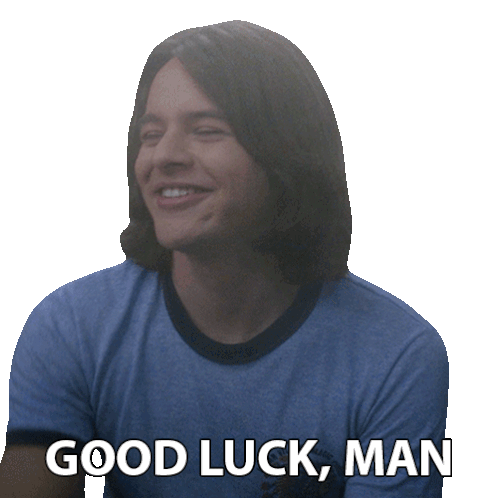 Jay Kelso from That '90s Show smiles and says "Good Luck, Man" while wearing a blue shirt.