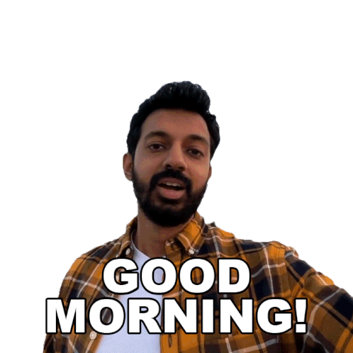 Faisal Khan, a man with a beard and plaid shirt, cheerfully wishes 'Good Morning!' to start the day.