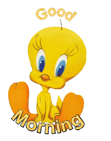 Tweety Bird winks and smiles, wishing a 'Good Morning' in this cheerful animated sticker.