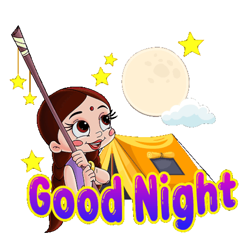 Chutki from Chhota Bheem wishes you a good night, camping under the moon and stars with her tent.
