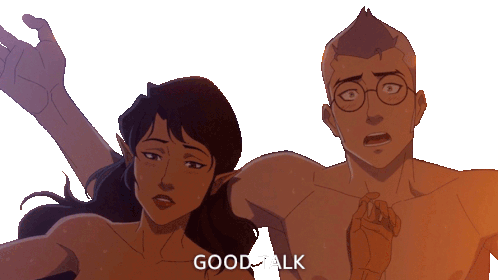 Vex'Ahlia and Percival de Rolo III share an awkward "Good Talk" moment from The Legend of Vox Machina.