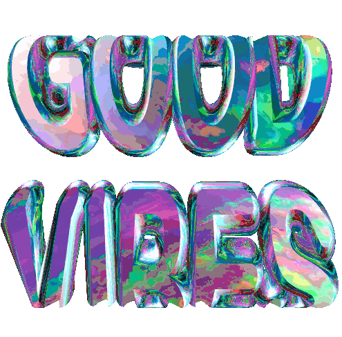 An animated sticker featuring colorful, abstract shapes morphing into the words 'GOOD VIBES' with a trippy effect.