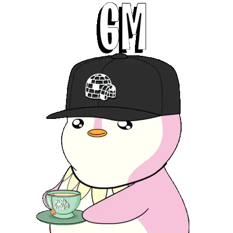 Animated black and white emojis: one crying, one smiling with a thumbs-up, conveying good morning wishes.