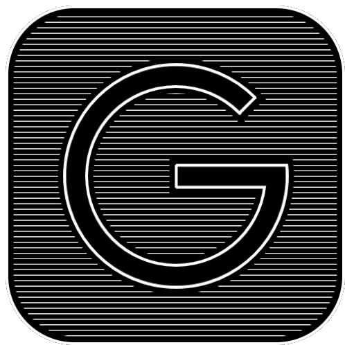 A black and white animated sticker featuring the Google 'G' logo with flashing horizontal stripes.