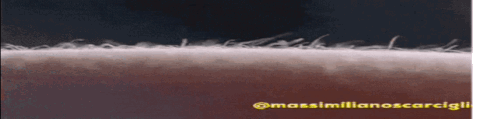 A close-up view of skin or a surface with hairs standing up, creating the effect of goosebumps.
