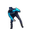 A pixelated figure, resembling a gopnik, performs a dynamic dance move with a high kick, embodying a popular meme.