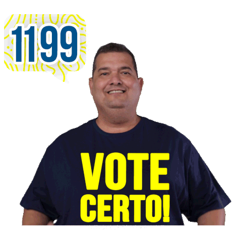George Reis, also known as Gordinho Da Favela, gives two thumbs up with 'VOTE CERTO!' on his shirt, encouraging voters.