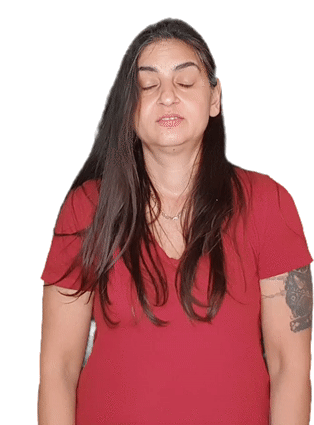 Gordyfit, known for Gebärdensprache, yawns widely, covering her mouth before finishing the tired expression.