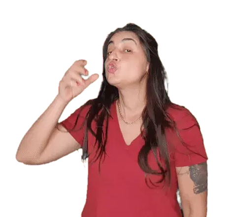 Gordyfit demonstrates various expressions and gestures in Gebärdensprache (sign language).