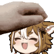 A heartwarming sticker featuring Gorou from Genshin Impact, as a hand gently pets the head of the beloved canine-eared character.