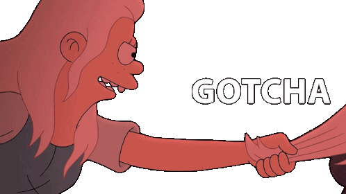 Bean from Disenchantment playfully says 'Gotcha!' while holding someone's hand, expressing triumph or a playful catch.