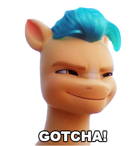 Hitch Trailblazer from My Little Pony: A New Generation reacts with a smug 'Gotcha!' then a surprised expression.