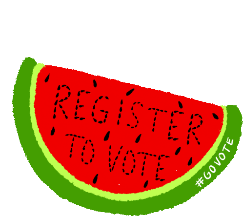 Encouraging voters to participate in the election, featuring a summer picnic theme with watermelon and 'Go Vote' message.