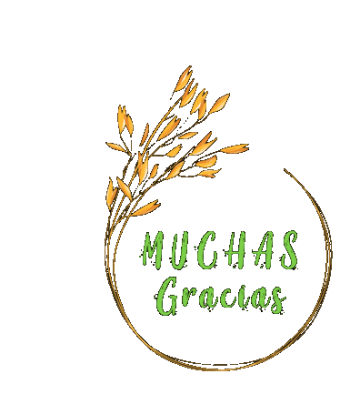 A warm 'Muchas Gracias' sticker featuring elegant green text within a golden frame and wheat branch.