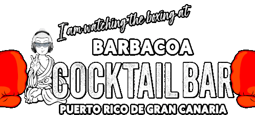 Logo for Barbacoa Cocktail Bar in Puerto Rico de Gran Canaria, promoting live boxing events with boxing gloves.