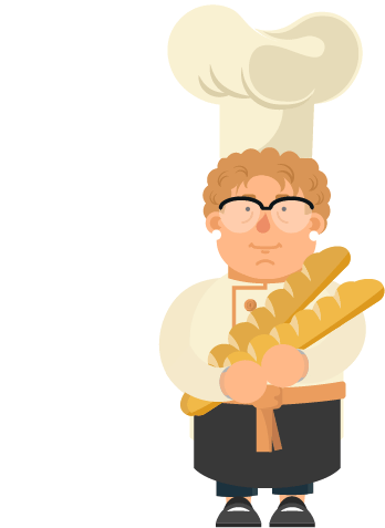 Oma Doris, the grandmother baker, proudly holds two fresh baguettes, ready to share her delicious homemade bread.