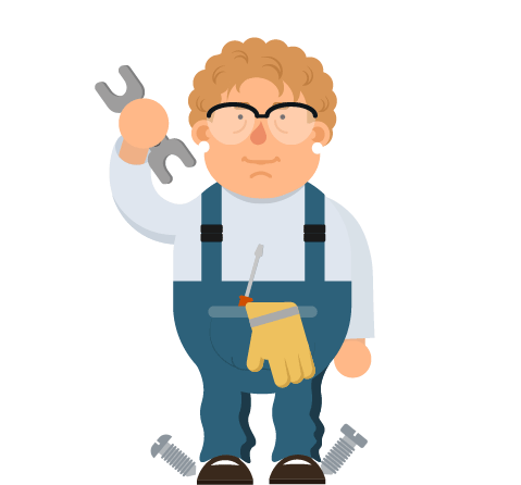 Granny Getbaff, also known as Oma Doris, holds a wrench, ready for repairs with her tools and screws.