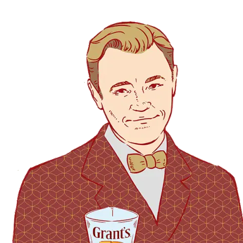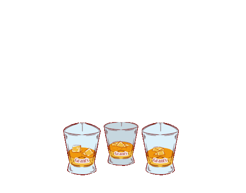 Three glasses of Grant's whiskey with ice clinking together in a triple good toast.