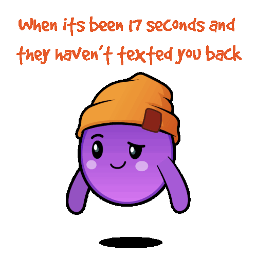 An impatient grape character in a beanie gets frustrated waiting for a text back after 17 seconds, eventually throwing its phone.
