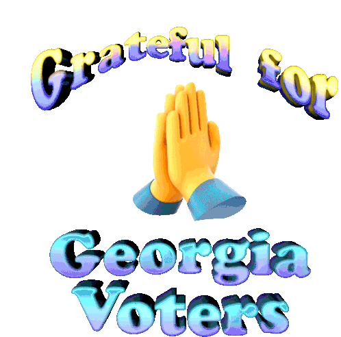 Animated sticker expressing gratitude for Georgia voters, featuring shimmering text 'Grateful for Georgia Voters' and praying hands.