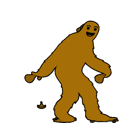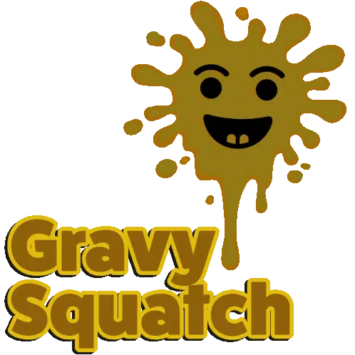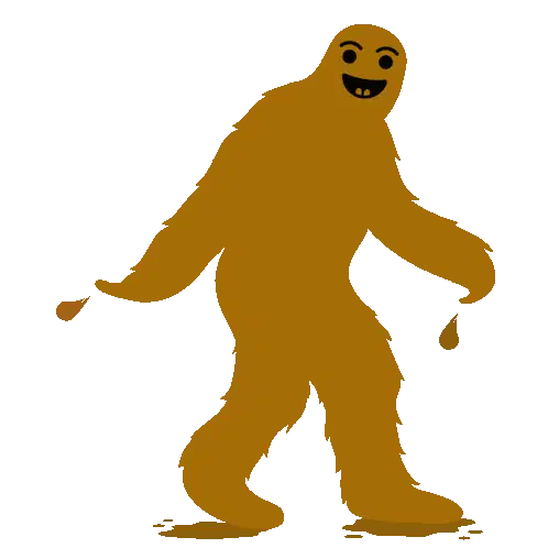 A brown, furry Gravysquatch character happily dances and waves, moving its arms and legs in a playful manner.