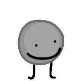 Animated gray circle character with a simple face and stick limbs, from Knoty Animations object show.