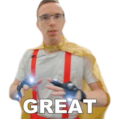 Austin Evans, wearing a cape and suspenders, enthusiastically declares 'GREAT!' in this fun sticker.
