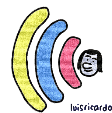 A hand-drawn animated sticker featuring a WiFi signal with a face, signed by Luis Ricardo, symbolizing a great internet connection.
