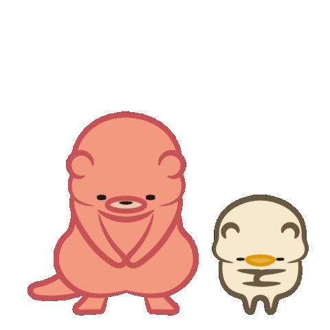 Two adorable otter-like characters express gratitude with a polite bow, perfect for showing appreciation.