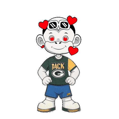 a cartoon character wearing a green bay packers shirt and shorts