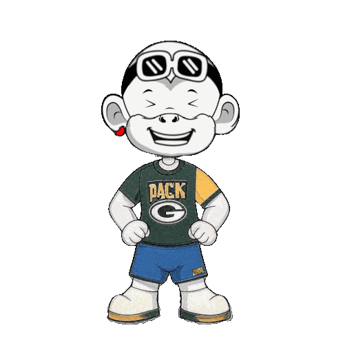 a cartoon character wearing a packers shirt and shorts