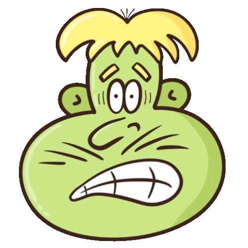 a cartoon drawing of a green monster with yellow hair and a big mouth