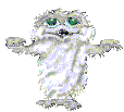 A cute gremlin-like creature transforms from small and fluffy to a larger, more monstrous form in this pixel art sticker.
