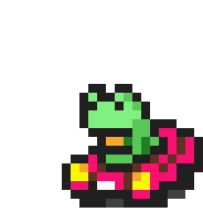An adorable pixel art sticker featuring Gronouye, the frog character from Mother 3, driving a vibrant red cabriolet car.