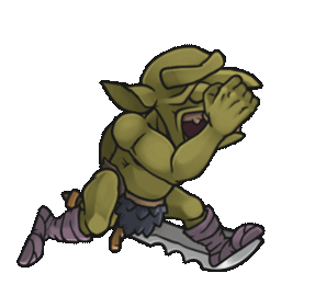 A fierce Gretchin character from Shootas Blood Teef, wielding a large, jagged sword with an aggressive stance.