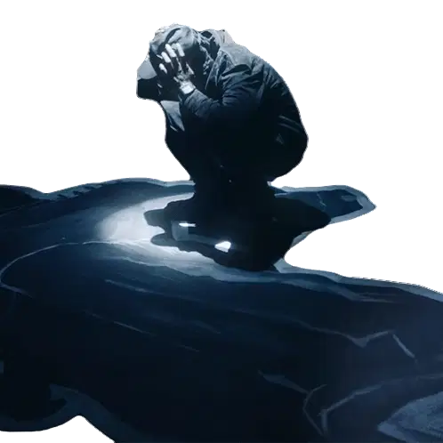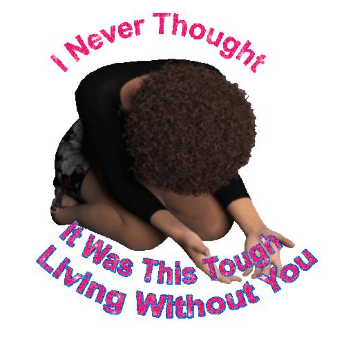 A woman kneels in sorrow, with the poignant text "I never thought it was this tough living without you" appearing around her.
