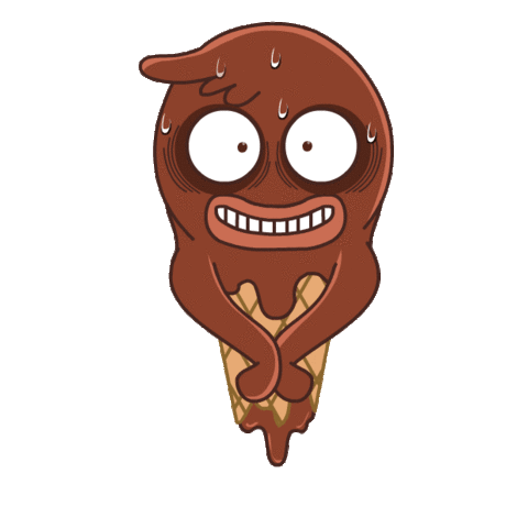 A distressed, melting chocolate ice cream character with a grimace and sweat, trying to persevere through its suffering.