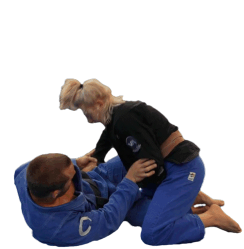 Nikki Preisinger demonstrates grip fighting techniques in Brazilian Jiu-Jitsu, engaging in a ground grappling drill.