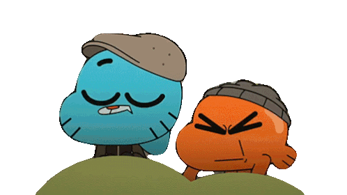 Gumball Watterson and Darwin Watterson from The Amazing World of Gumball look surprised and scared, mouths wide open.