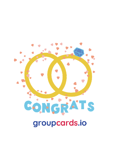 Celebrate love and commitment with this animated sticker featuring two golden rings, sparkling hearts, and 'CONGRATS'.