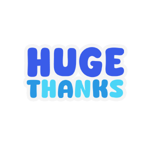 A vibrant blue and light blue sticker displaying the message 'HUGE THANKS', associated with Groupgreeting-labcorp-ty.
