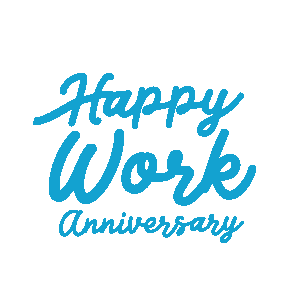 Celebrate a milestone with this animated sticker featuring the cheerful message 'Happy Work Anniversary' in blue script.