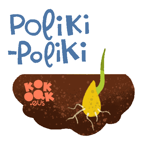 An animated seedling slowly growing from a seed in the soil, with 'Poliki Poliki' text, symbolizing gradual growth.