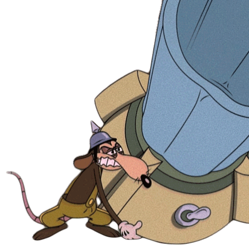 Werner Werman, the rat character from The Cuphead Show, growls angrily, baring his teeth and straining against an object.