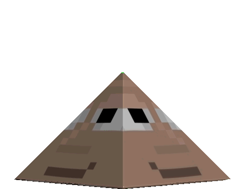 A rotating 3D pixel art pyramid character from Growtopia, featuring a distinct eye and mouth, perfect for fans of Pixel World.