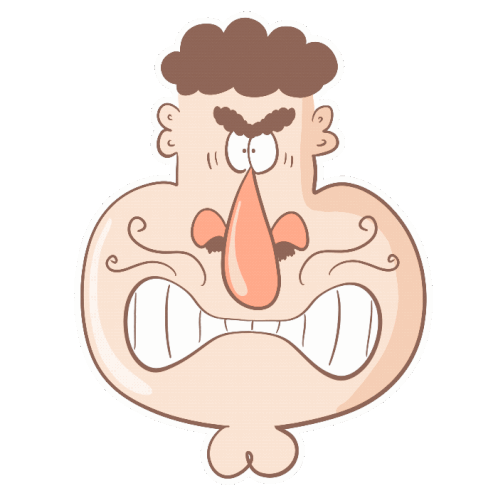 a cartoon drawing of a man with an angry expression