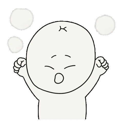 A cute, round-faced dog character with sparkly eyes and a bell, displaying a grumpy and annoyed expression with its arms slightly out.