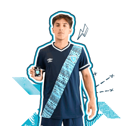 A Guatemalan soccer player, possibly Allan Juarez or Arquimides Ordoñez, smiles while holding a Bantrab card.